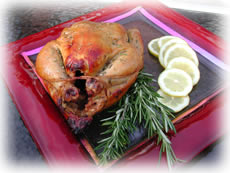 Cook until the skin of the chicken is generously brown and the flesh is cook through. Ever 20 minutes or so baste the chicken with juices that accumulate on the drip pan.