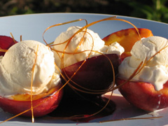 GRILLED NECTARINES WITH ICE CREAM 9 nectarines, halved and pitted Preheat the barbecue to 350°F/176°C or medium heat. In a small bowl mix together honey and lime juice until well combined. |