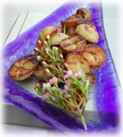 GRILLED ROSEMARY BABY POTATOES 1 pound of baby white potato - (1kg) Salt and pepper to taste Preheat barbeque to 300º F. Slice Potatos in ½. Place in a sealable plastic bag and add above ingredients. Place in refrigerator for 1 hour. |