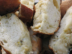 Prepare the barbecue for indirect grilling. Heat one side of the barbecue to medium heat- 300°F/150°C. Oil the grill. Place the garlic bread on the side of the barbecue that is turned off. Let warm on the grill for 10 minutes.