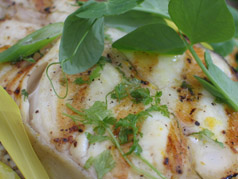 Wrap securely in foil. Rinse halibut in cold water and pat dry. Leave the skins on to hold fish together on grill. Season fillets with pepper, salt, lemon zest and chopped chervil. Drizzle fish with olive oil to coat evenly. Place the fillets into the refrigerator until grilling time |