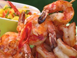 Oil the grill. Place shrimp on grill and cook for 2 minutes per side. Cook until golden char marks are achieved, and lost their opaque colour. Remove from grill.