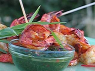 Grilled Tandoori Shrimp with Mint Sauce