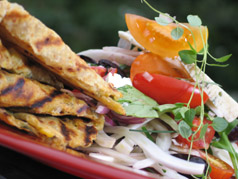 To a large bowl add sliced fennel, arugula. Add the tomatoes with the vinaigrette. Toss carefully.