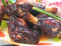 Brush each lamp shank with Hoisin Sauce and wrap in foil.
