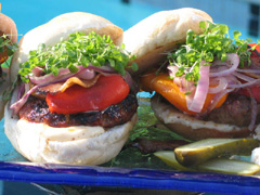 Preheat barbeque grill to 375°F/190°C or medium high heat. Oil the preheated grill. Brush the burgers with prepared glaze.