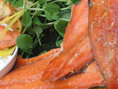 Note: Make sure you put a large smoke pouch on the BBQ so that the cavity is really full of smoke. This is due to the trout being smoked for such a short time. You will want to maximize the amount of smoke flavour your trout receives.
