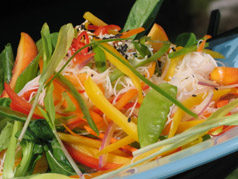 Cook vermicelli by placing into a pot of boiling water for 1 minute. Strain and