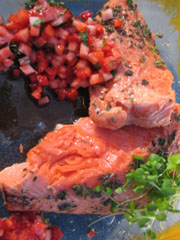 SALMON WITH STRAWBERRY SALSA 1 centre cut salmon side skin on Aluminum foil |