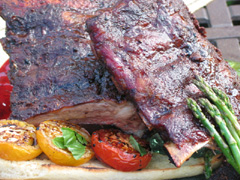 Preheat one side of barbeque to 250°F/120°C or medium low heat grill.