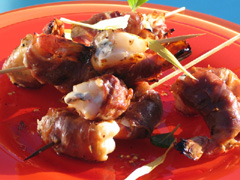 Wrap proscuitto all around shrimp, ensuring the stuffing is not exposed.