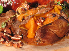 Slice potatoes lengthways and drizzle with Orange Pecan Butter