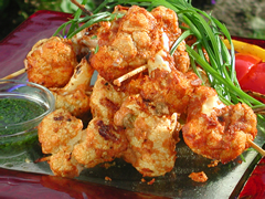 Separate the cauliflower into florets. Using a fork, prick the florets in several places. Place the cauliflower into a plastic bag and pour the yoghurt marinade overtop. Refrigerate for a minimum of 2 hours.