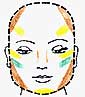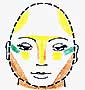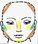 Highlight: Centre of nose, centre of cheeks, chin and forehead