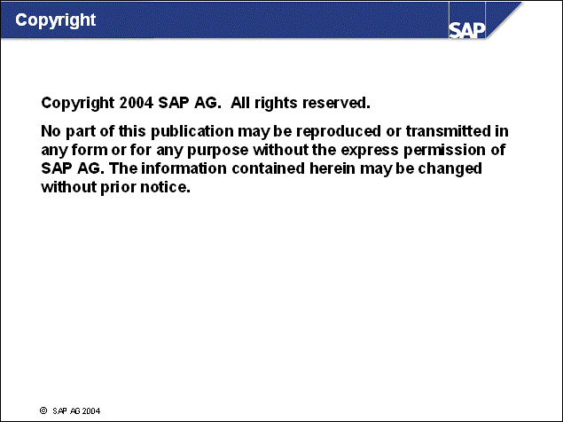n These materials are subject to change without notice. These materials are provided by SAP AG and its affiliated companies ("SAP Group") for informational purposes only, without representation or warranty of any kind, and SAP Group shall not be liable for errors or omissions with respect to the materials. The only warranties for SAP Group products and services are those that are set forth in the express warranty statements accompanying such products and services, if any. Nothing herein should be construed as constituting an additional warranty.