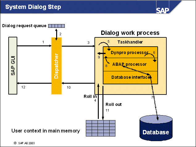n Once you have established a connection with a dispatcher through the SAP GUI and a session is started for you in the system, the following steps are executed for each request: