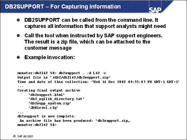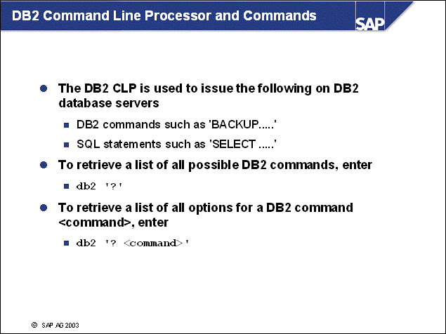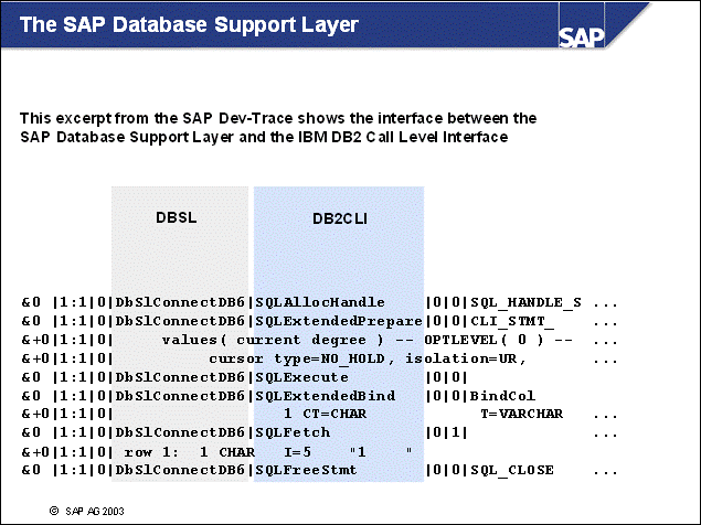 n The SAP Database Support Layer is a set of C routines, which call the IBM DB2 Call Level Interface (CLI).