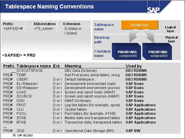 n The database server distinguishes between the different SAP systems by storing the tables of the system using different schema owners. For the above example, the SAP systems PR1, PR2, PR3 connect to database PR1. Each system uses separate tables.