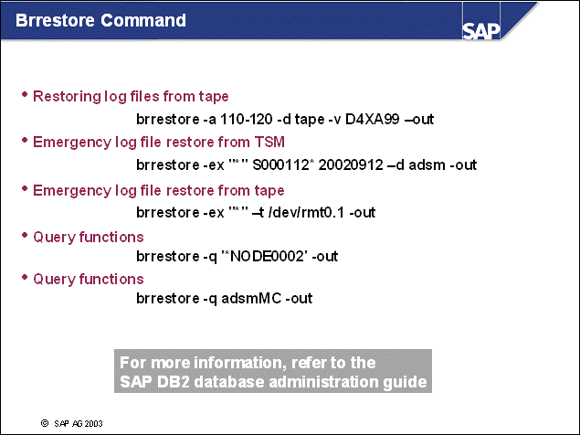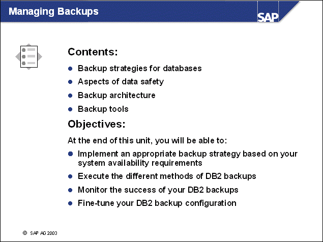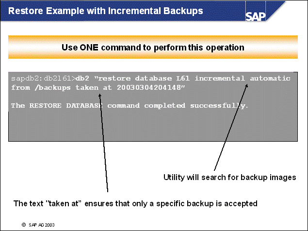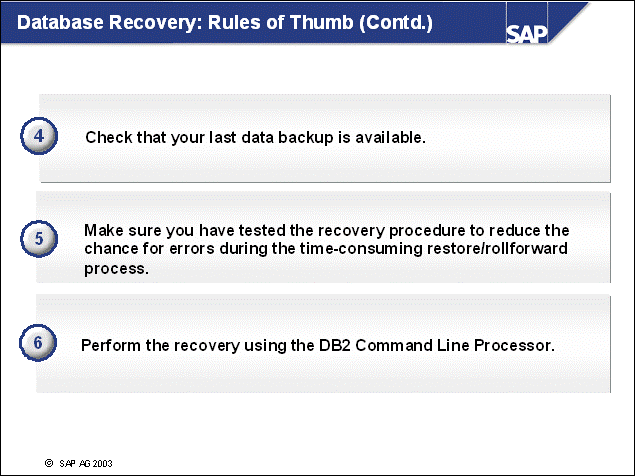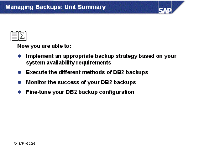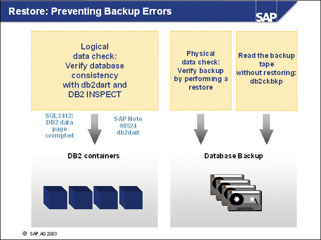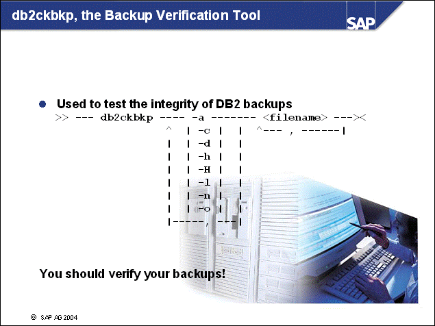 n To check your backup, use the db2chkbkp tool (refer to the "Tools for DB2 Database Servers" unit).