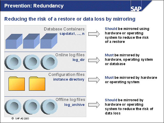 Backup and archive: Check if the last backup and archive of offline log files were successful.