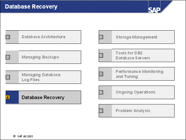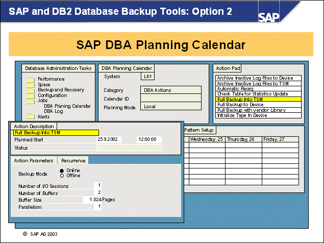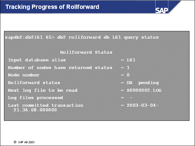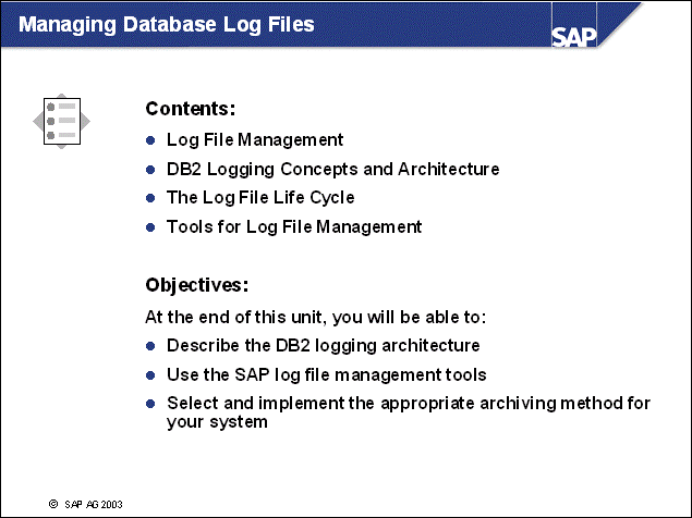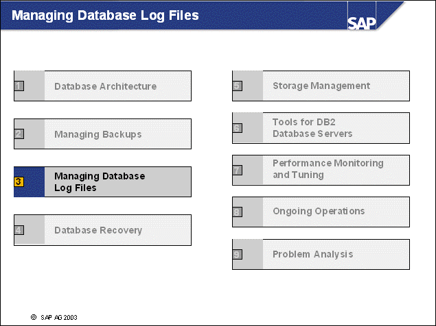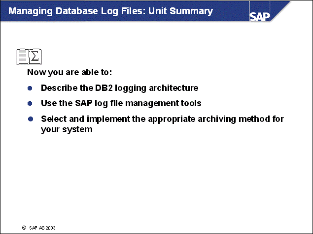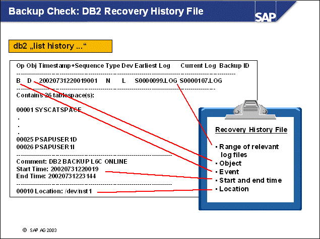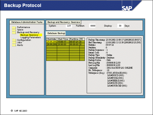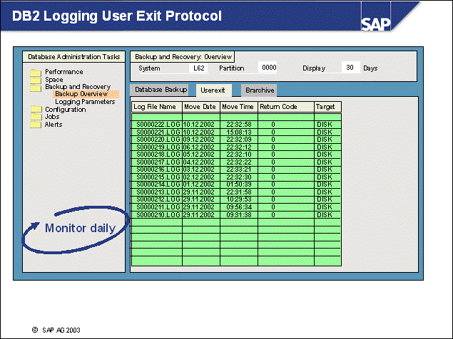 n To get the DB2 Logging User Exit Protocol information, from transaction ST04, choose Backup and Recovery Backup Overview (transaction DB12).