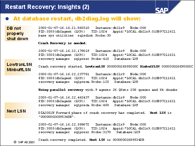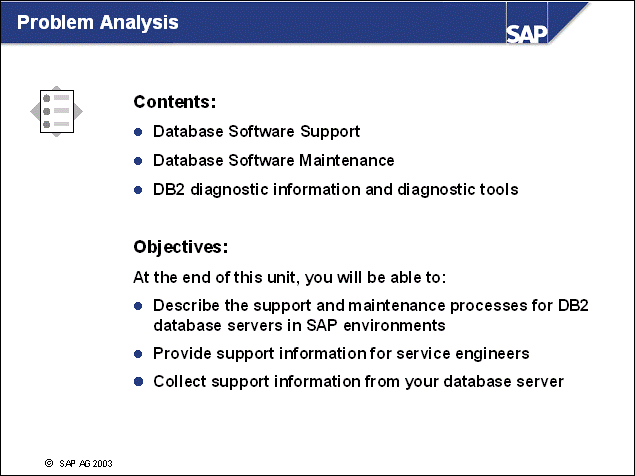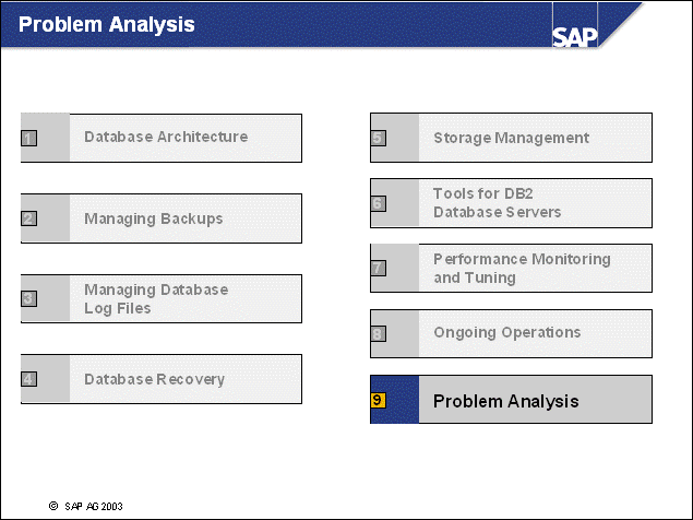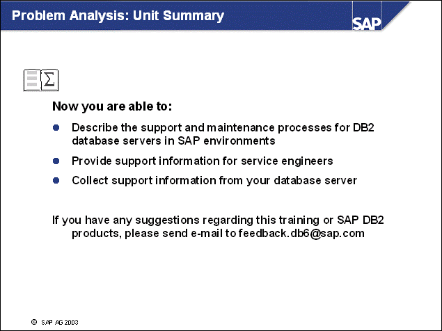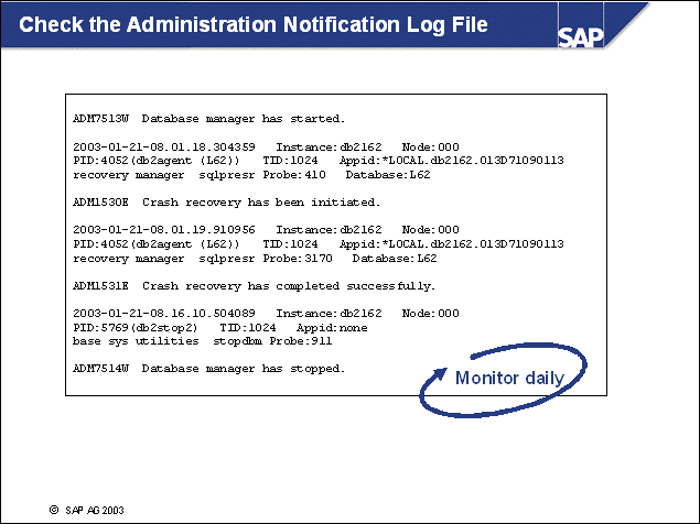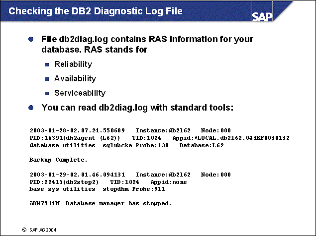 n For more information on analysing db2diag.log, refer to the "Problem Analysis" unit