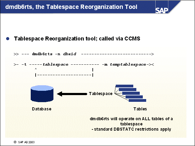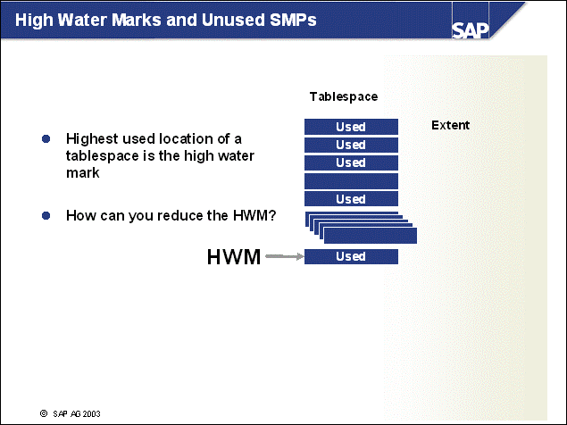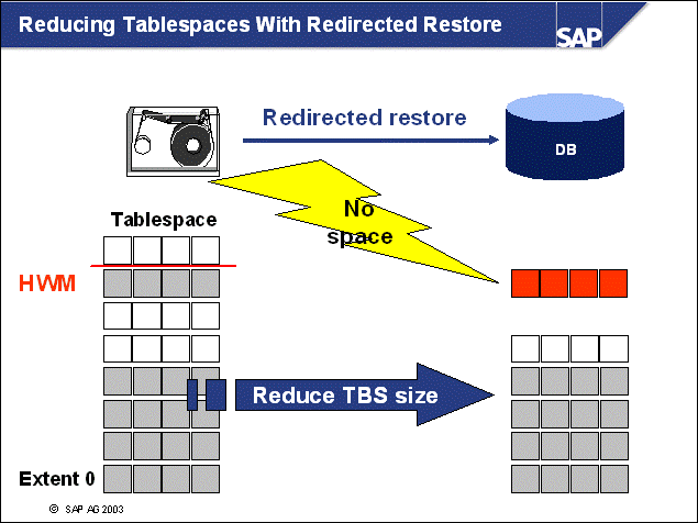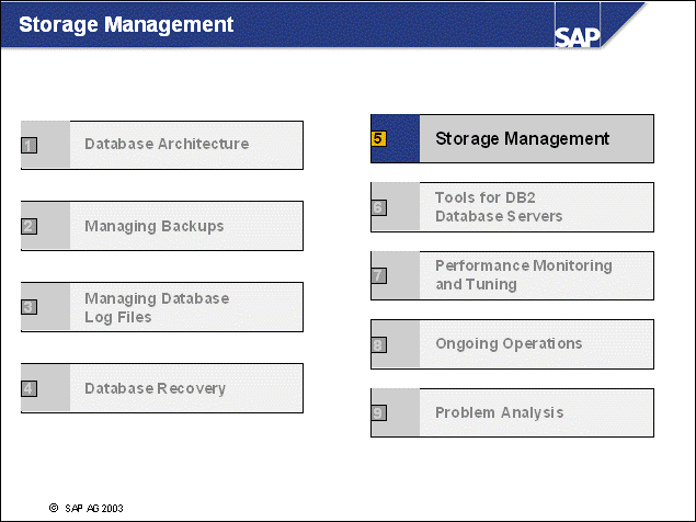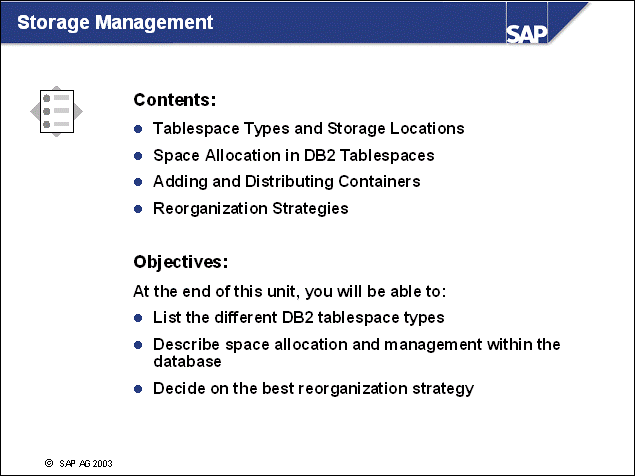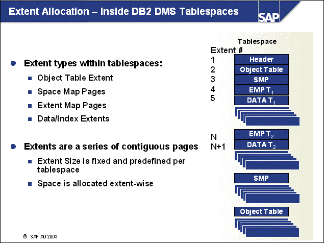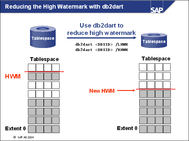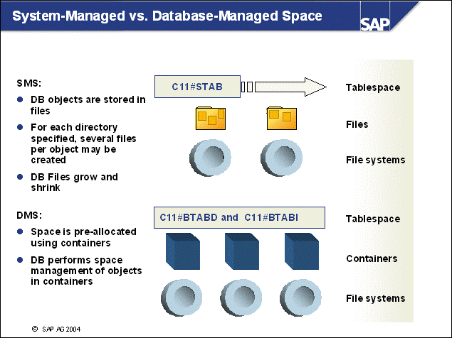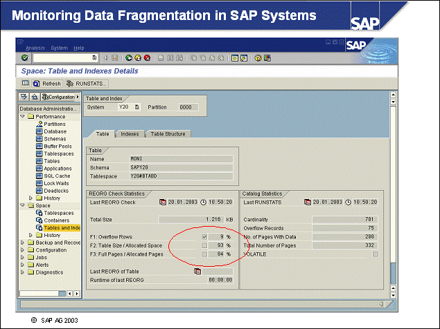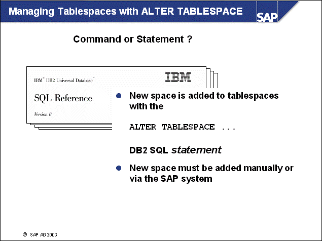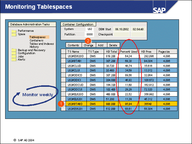 n It is in the nature of a database that it will grow over time. New extents are allocated in tablespaces and sooner or later DB2 will not be able to find free space. To avoid downtime as a result of a tablespace full condition, you should monitor freespace on a weekly basis or when performing actions that are expected to change the space allocation in the database (for example, client copy and batch input). To get the appropriate information, go to transaction ST04, choose Space -> Tablespaces.