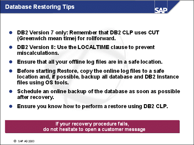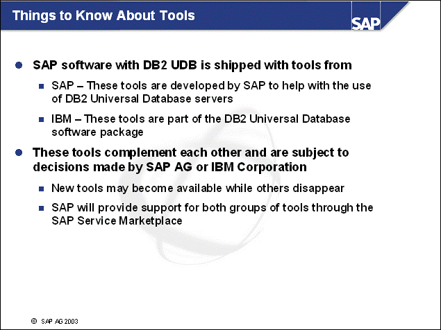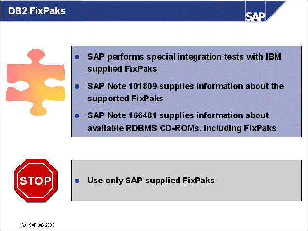 n When IBM releases a new DB2 version or FixPak, SAP performs special tests to ensure compatibility with SAP.