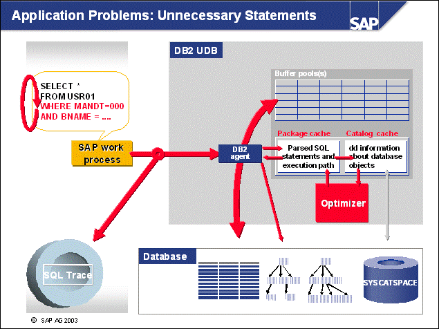 n SQL requests that are sent from the SAP application server will be processed within the SAP Database Interface (DBI). The DBI is SAP's database independent interface layer for SQL processing.