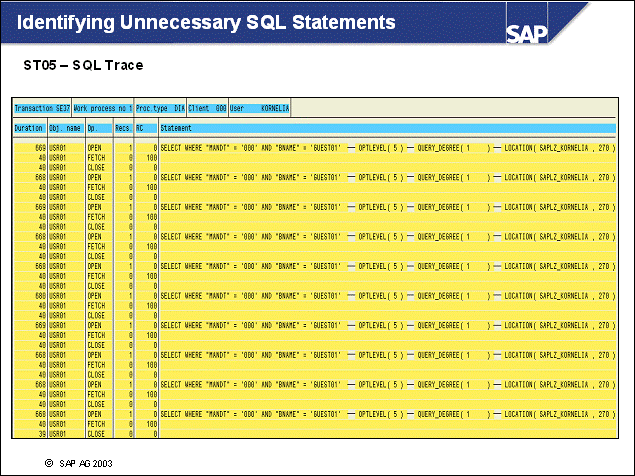 n The above excerpt from an SAP DBSL Trace is shown for educational purposes only. In normal operations of SAP systems, no knowledge about the trace is necessary.