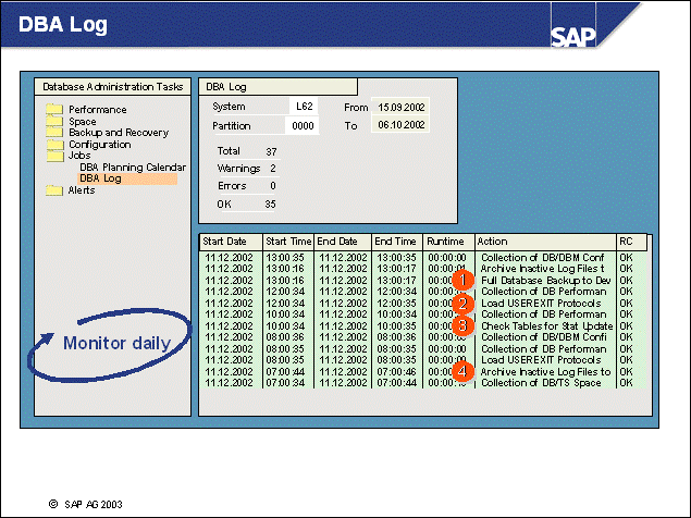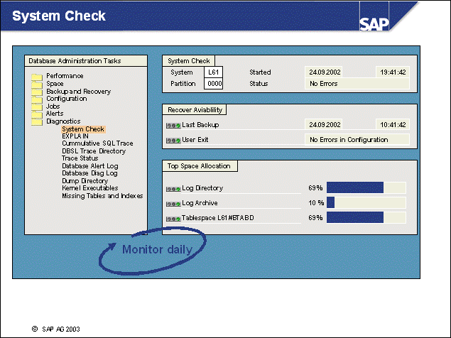 1-1-1 In transaction ST04, the following daily monitoring tasks should