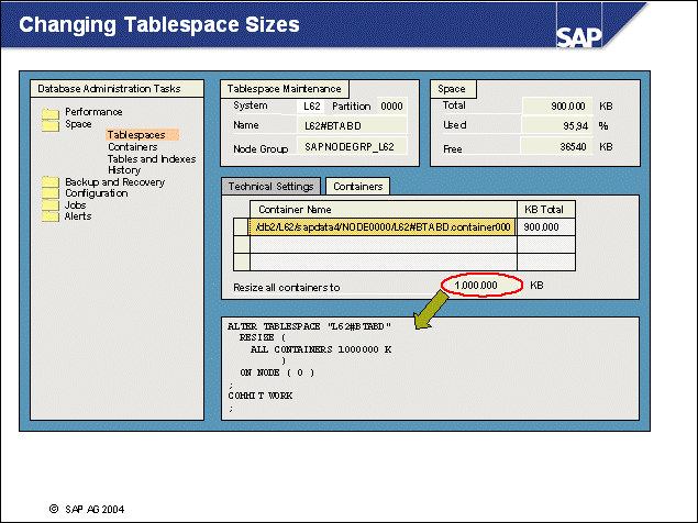 n SAP recommends increasing the size of all containers in one operation to avoid different container sizes.