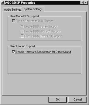 The AGOGO Applet in the Control Panel sets the various properties for the AGOGO/Maestro PCI sound card.