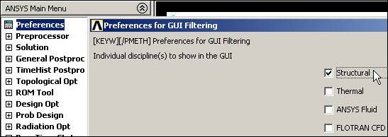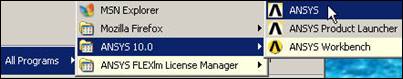 Begin ANSYS with Start All Programs ANSYS 10.0 ANSYS. That will bring you to the main ANSYS Utility Menu: