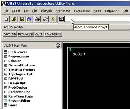 Figure Opening ANSYS to the Utility Menu and graphics window