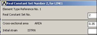 Enter 0 for initial strain (ISTRN), OK. Set 1 appears in Real Constants.