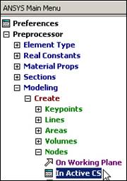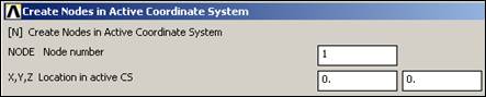Of course, ANSYS has powerful mesh generation capabilities. However, for beginners or small problems with only a few nodes you can type in the coordinates, or use cursor input via the graphics window. Use the first approach: