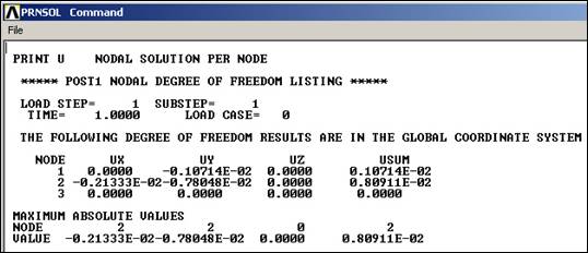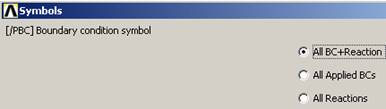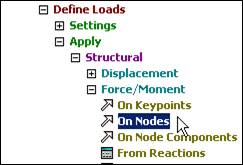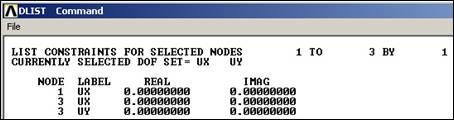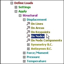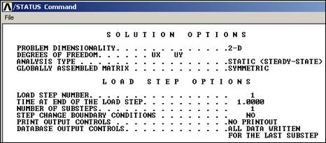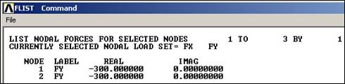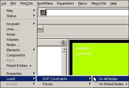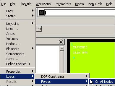 Note that these load operations are shown in the graphics window as arrows pointing in the direction of load, at each restrained node. If your plot does not show everything you have defined also try PlotCtrls Symbols. Symbols and check that the items you want are turned on.