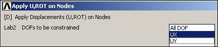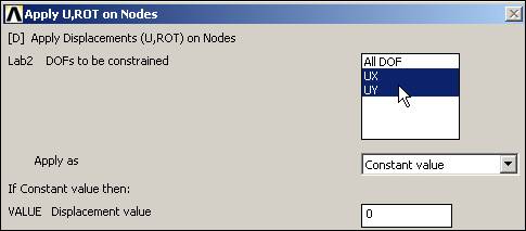 Figure Beginning the nodal displacement restraints at a picked node