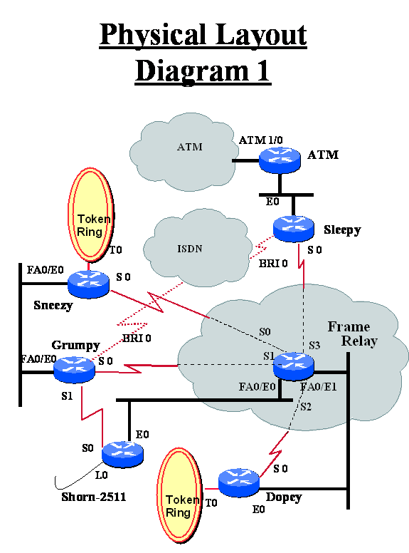 The objective of this lab is to configure OSPF/IGRP/EIGRP/BGP/RIP in different parts of the network and to redistribute routing information. In the working setup all routers should see every route and should be able to ping any interface in the network. Do NOT configure static routes to accomplish this.