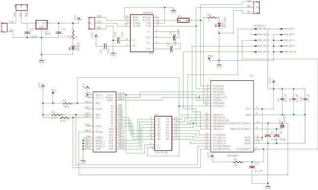 The ATmega8 also provides both the Two-Wire Interface (I2C compatible) required to configure the OV6620, as well as a hardware UART that provides the user-interface to the outside world.
