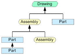 In Autodesk Inventor, each part and assembly is contained in a separate file. A subassembly is defined by storing references to the parts and subassemblies that it contains. New parts can be "derived" from other parts using file references. Lastly, drawings reference the file that they are documenting. So, if a product design is composed of 1,000 parts, 100 subassemblies, and 1,100 drawings, there are at least 2,200 Autodesk Inventor files that reference one another. |