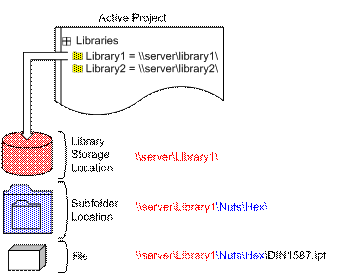 What distinguishes a Library from other search paths is that you locate them in a separate folder with which you associate a name. The name distinguishes these files from those that are specific to your project and from other libraries. Autodesk Inventor refers to a library as a Name Space. Within a given library, each file must have a unique file name. However, different libraries can have files with the same name.