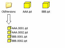 Each time Autodesk Inventor saves a file, it creates a new file and moves the existing file into a folder called OldVersions. Each location where Autodesk Inventor files are stored will have an OldVersions directory if any of the files have been edited and saved.