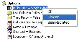 Both the Shared and Semi-Isolated modes provide a Check-in/Check-out facility. The functioning of the facility is somewhat different in the two modes, but the function is the same. It allows users to reserve files for editing.