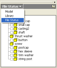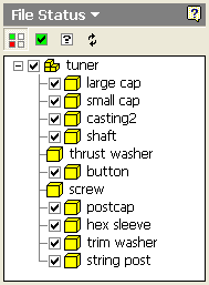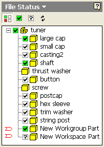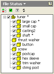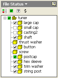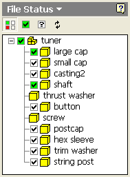 After the assembly is checked out, each item in the File Status browser has a check mark next to it. The black check mark indicates that you have the file checked out, but that no edits have been saved. |