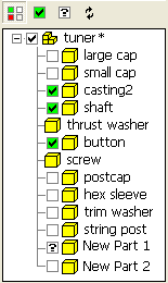 After checking out the files, the Large Cap and Shaft parts were edited (but not saved). The File Status browser indicates files that have edits that are not saved to disk by appending an asterisk symbol (*) to the end of the name. Notice that the Tuner also shows as having edits even though you did not explicitly edit Turner. Many actions that you can take will make changes to a file that you do not expect. The good news is that the Save command does not require you to save Turner, it gives you the option. |