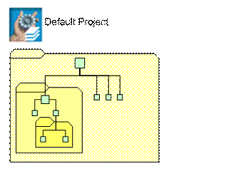 This scenario also uses the Default project, but the project is edited to contain two Library definitions. The user can hop around from design to design, and always have access to a shared set of common components. |