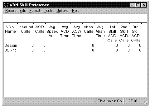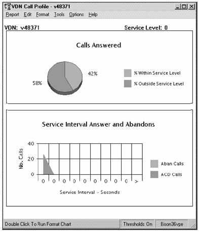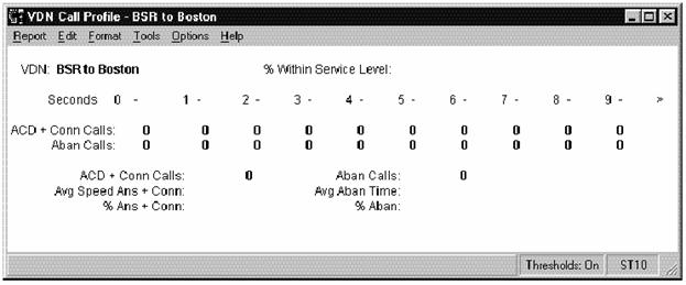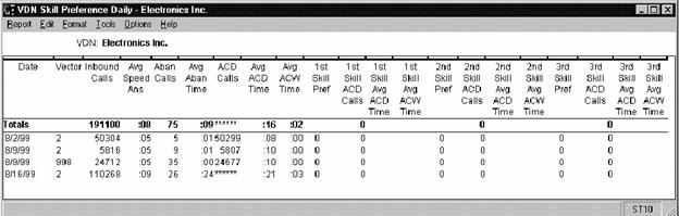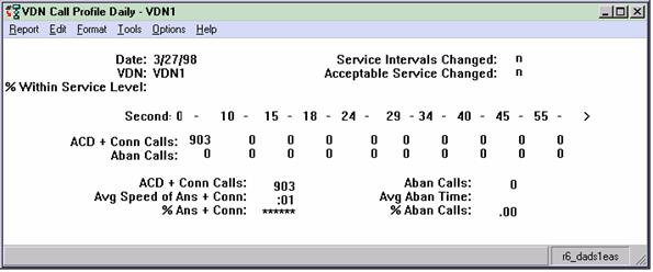 This report shows how calls to the VDN you specify are being handled compared to your call center's predefined Acceptable Service Level for the date you specify.