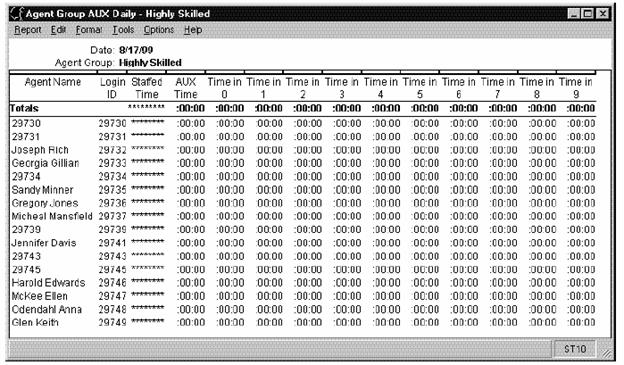 in ACW, in AUX, and so on, for a particular day. This report enables the